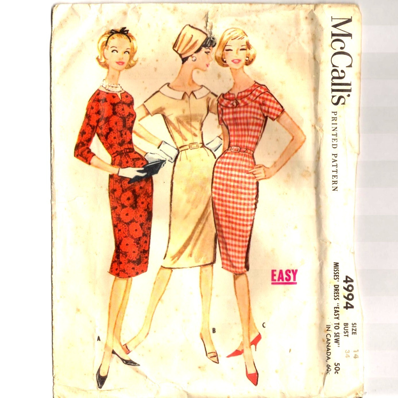 Vintage 1950s Pattern Mccall 4994 Womens Sheath Dress 14 Ebay